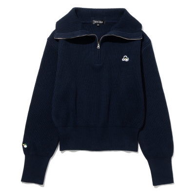 코튼 카라넥 골지 여성 하프 집업 니트 [NAVY]